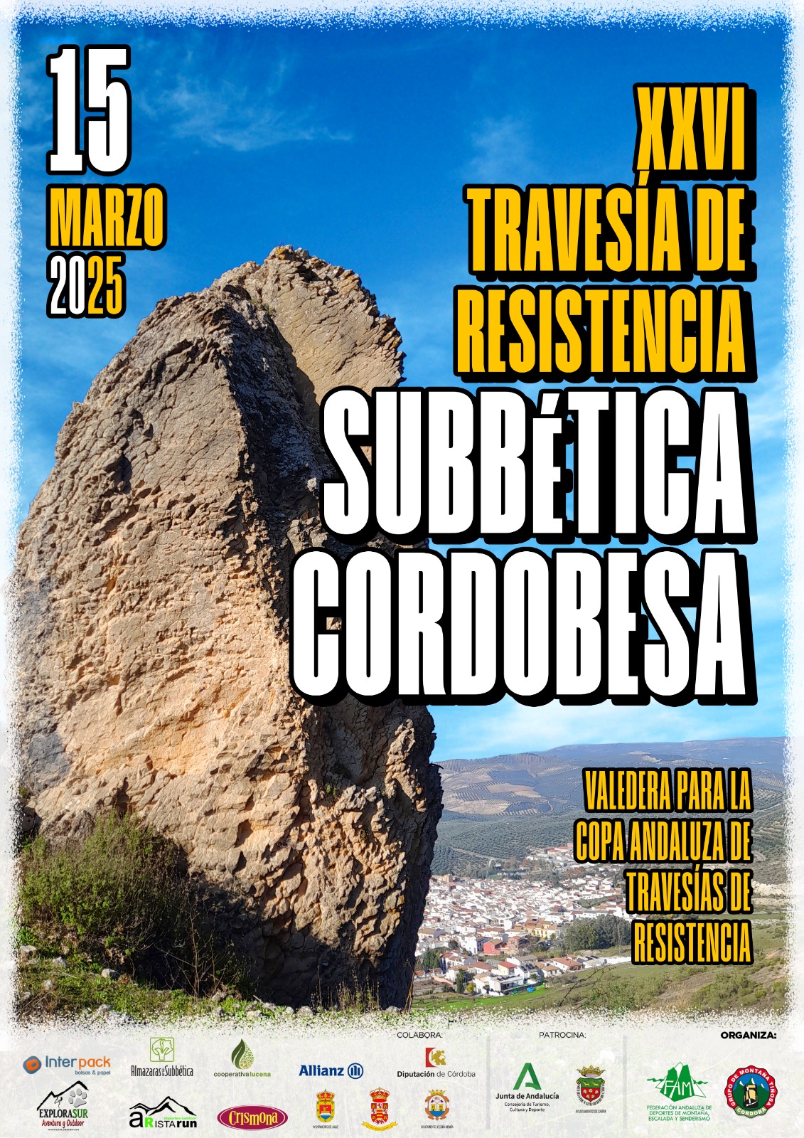 El Club de Montaña La Tiñosa organiza una nueva edición de la Travesía Subbética Cordobesa, prueba deportiva no competitiva puntuable para la Copa de Andalucía de Travesías que se celebrará el sábado 15 de marzo. Discurre por el Parque Nacional de las sierras subbéticas cordobesas con un recorrido aproximado de 57 kilómetros y un recorrido circular por pista terriza, camino y sendero y un desnivel de ascenso acumulado de 2.020 metros y de descenso de 2.020 metros, con salida y llega desde la Ciudad Deportiva de Cabra.