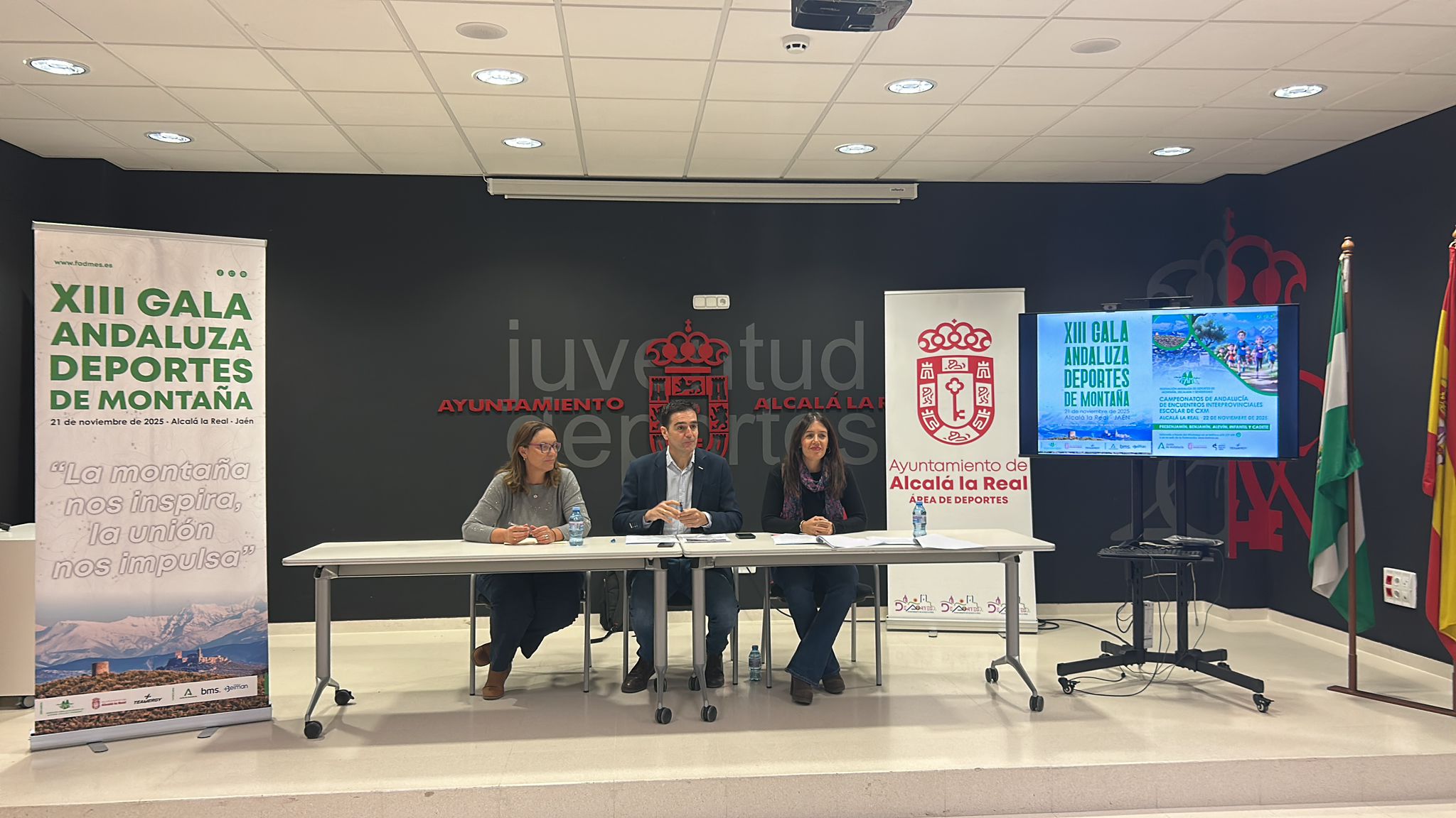 El alcalde de Alcalá la Real, Marino Aguilera, la concejal de Deportes, Belén Ramírez, y la presidenta de la Federación Andaluza de Deportes de Montaña, Escalada y Senderismo (FADMES), Mari Luz Arráez, han presentado este mediodía el intenso programa deportivo que acogerá la ciudad este viernes 21 y sábado 22, con la celebración de dos importantes citas autonómicas: la XIII Gala Andaluza de Deportes de Montaña y el I Encuentro Interprovincial Escolar de Carreras por Montaña.