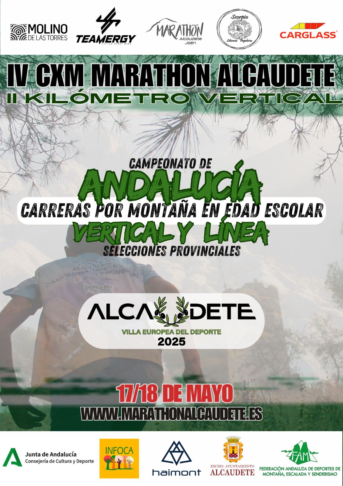 La Fase Final del Campeonato de Andalucía de Carreras por Montaña en Edad Escolar Individual y por Selecciones Provinciales se celebra este fin de semana 17 y 18 de mayo de 2025. Alcaudete (Jaén) es el lugar de celebración de la misma, un municipio y Ayuntamiento volcado con la competición en la que se darán cita los mejores corredores y corredoras por montaña en edad escolar. La participación en el evento corresponde a las categorías Alevín (deportistas que cumplan entre 11 y 12 años entre el 1 de enero y el 31 de diciembre de 2025); Infantil (entre 13 y 14 años) y Cadete (entre 15 y 16 años).