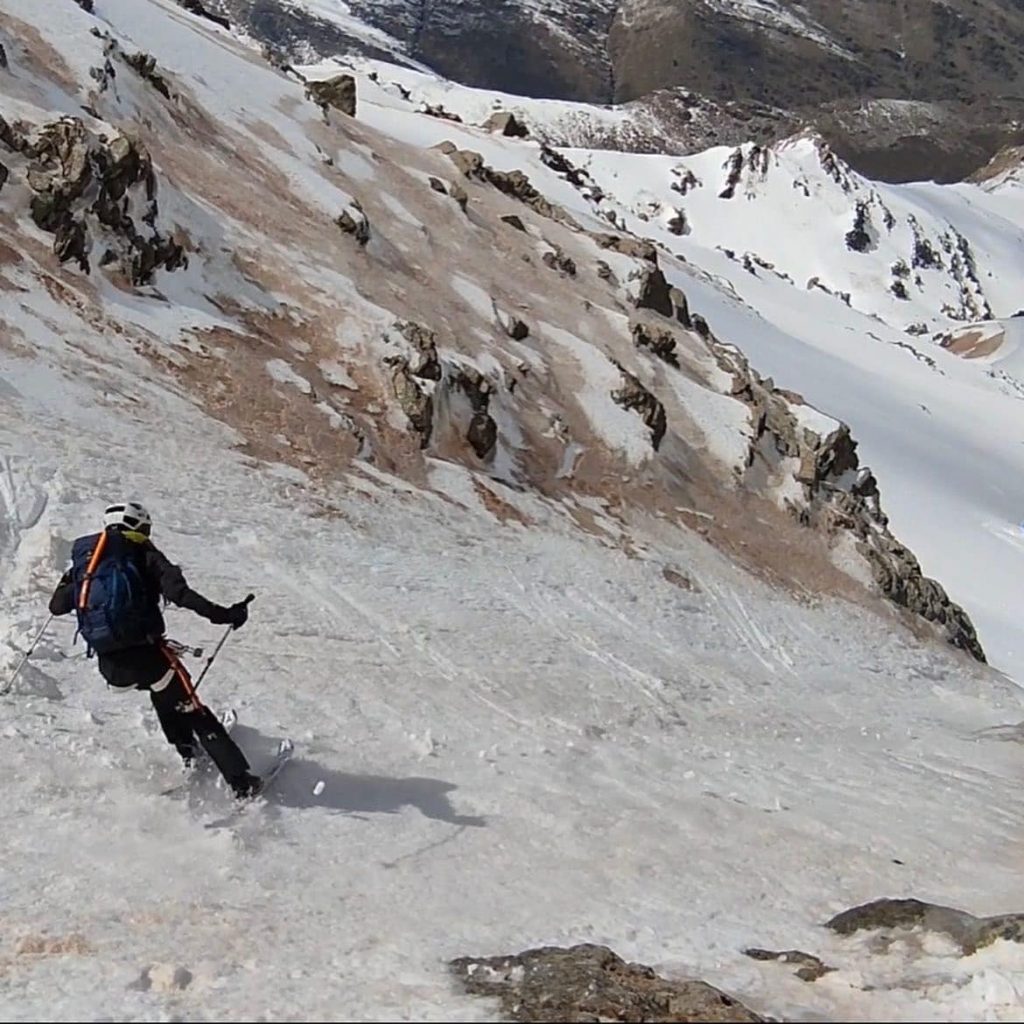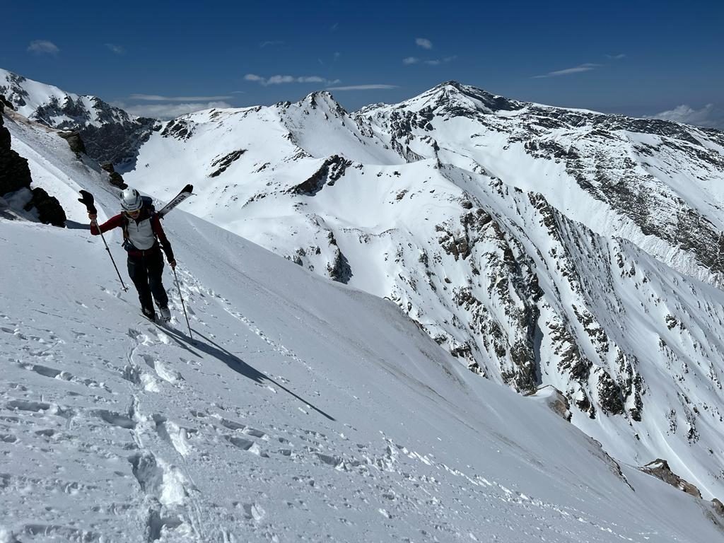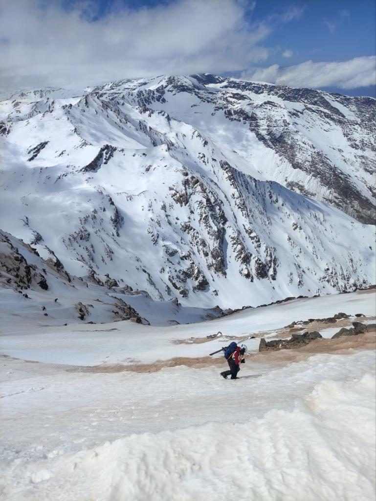 “Cuando coronamos la Alcazaba me encontraba bastante cansada porque estoy poco acostumbrada a andar con crampones y se me hizo muy largo. Pero como no tuvimos mucho tiempo para descansar ya que teníamos una nube ahí acechando, rápidamente quitamos las pieles y empezamos a bajar, encontrándonos todo tipo de nieve. Al final la pudimos esquiar entera, sin tener que montar un rápel”, subraya.