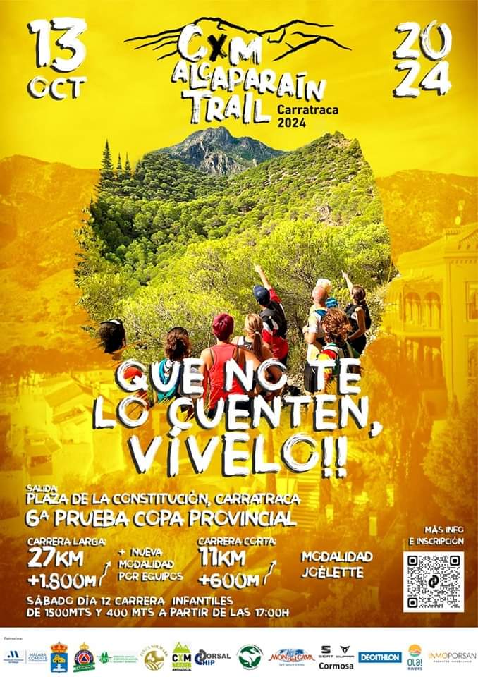 La siguiente prueba de la Copa Provincial de CxM de Málaga, patrocinada por la Diputación de Málaga, tendrá lugar el próximo 13 de octubre con motivo de la CxM Alcaparraín Trail en Carrataca, de 27 kilómetros y 1.800 metros de desnivel positivo.
