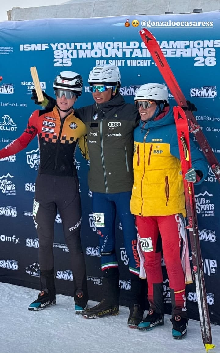 Grandísima jornada para el esquí de montaña andaluz con Gonzalo Casares Hervías (CD Superan2) como principal protagonista. El granadino se ha colgada esta mañana la medalla de bronce en la Vertical del Campeonato del Mundo ISMF Jóvenes que se celebra en la estación francesa de Puy Sant Vincent, donde de forma paralela se desarrolla una nueva cita de la Copa del Mundo Senior. Ana Alonso Rodríguez (Club Alpujarra) ha logrado ser Top-10 en la competición de hoy.