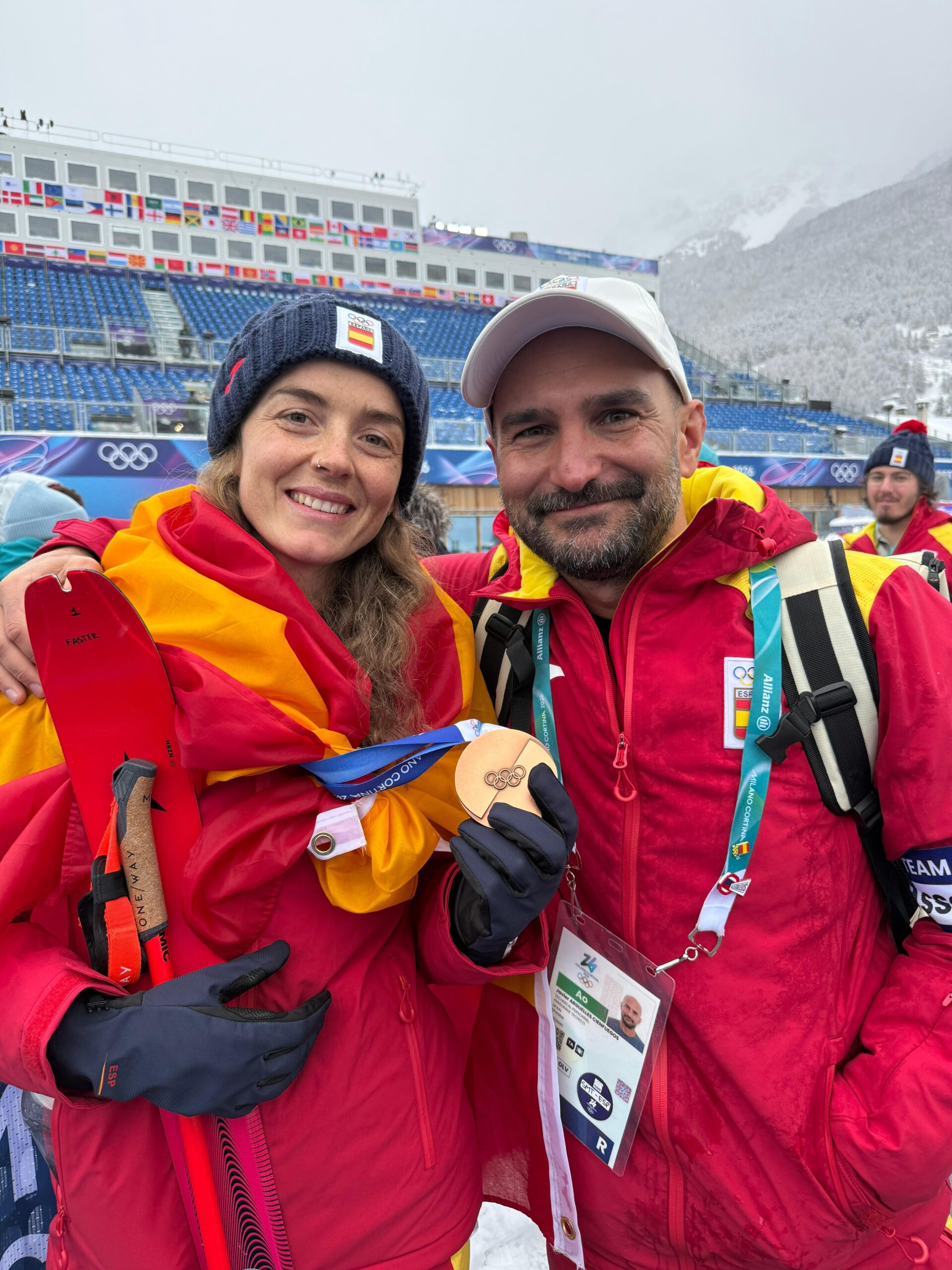 El debut del esquí de montaña como deporte olímpico ha tenido a la granadina Ana Alonso Rodríguez (Club Alpujarra) como principal protagonista junto con Oriol Cardona. La campeona española ha inaugurado el medallero español en los Juegos de Milán-Cortina con un bronce que sabe a oro después de cuatro meses de lucha contra el crono en busca de una puesta a punto tras el atropello sufrido a finales de septiembre. Bajo una intensa nevada y temperaturas bajo cero, la esquiadora de la FADMES ha cumplido su primer sueño en Bormio en forma de medalla de bronce, que unida al oro obtenido por Oriol Cardona en la jornada de hoy hacen de gran carta de presentación para la prueba del Relevo Mixto de este próximo sábado.