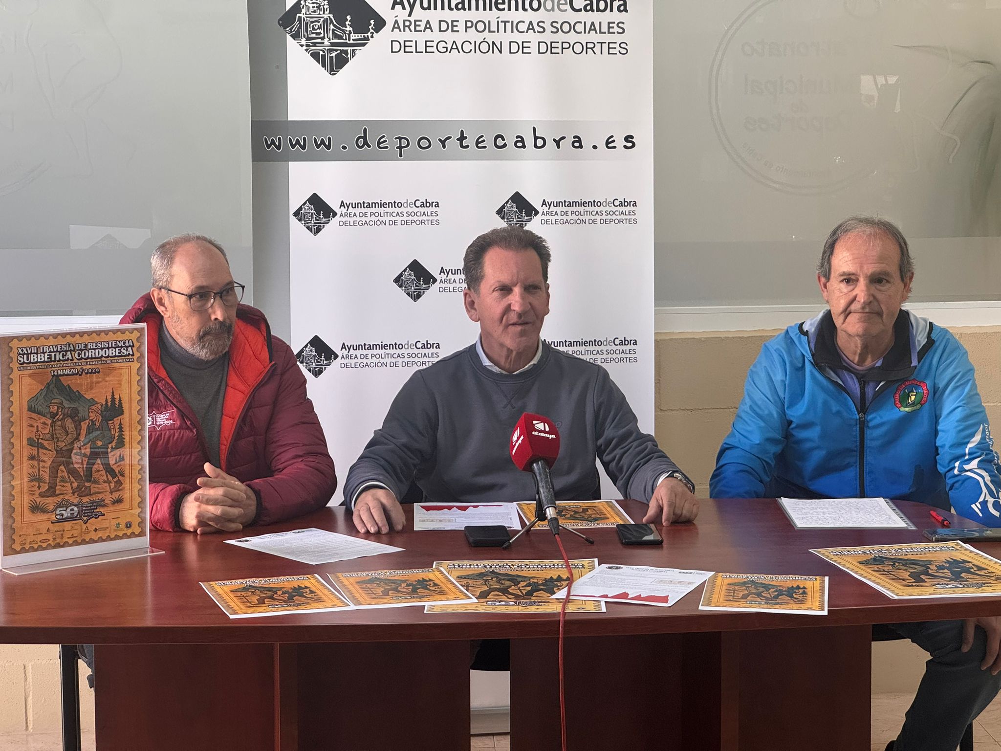 La Delegación de Deportes del Ayuntamiento de Cabra ha presentado la XXVII Travesía Subbética Cordobesa, una de las citas deportivas más consolidadas del calendario de senderismo en Andalucía que se celebrará el próximo sábado, 14 de marzo, en el entorno del Parque Natural y Geoparque de las Sierras Subbéticas. Así lo han anunciado el delegado municipal de Deportes, Francisco Casas, junto al presidente del Grupo de Montaña ‘Tiñosa’, Ángel de la Mata, entidad organizadora de la prueba, y Francisco Jiménez, miembro del club y antiguo representante de la Federación Andaluza de Deportes de Montaña, Escalada y Senderismo. La prueba recorrerá 52 kilómetros por el Parque Natural y reunirá a unos 200 participantes de más de 30 clubes andaluces.