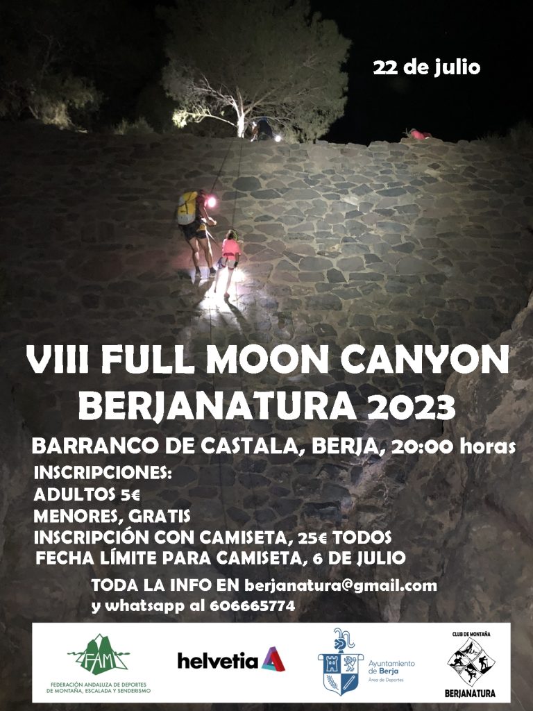 A un solo mes de la celebración de la octava edición del Full Moon Canyon Berjanatura 2023 los organizadores recuerdan que las inscripciones para participar en este encuentro ya clásico de barranquismo del calendario de la FADMES se encuentran abiertas.