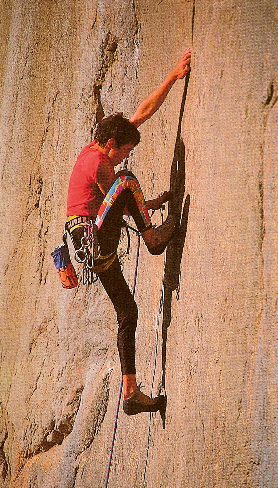 Me inicié en la escalada en el año 1987 y en aquella época era una actividad muy asociada al alpinismo; al hablar de ello en caso de caída se pensaba directamente en riesgo de muerte y es cierto que estaba muy presente. La escalada deportiva estaba naciendo y las ascensiones por la pared se hacían en artificial o en escalada mixta. La ética y la moral estaban muy presentes y no estaba permitido poner una chapa en la pared en donde entrara un seguro flotante.