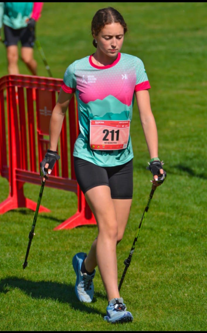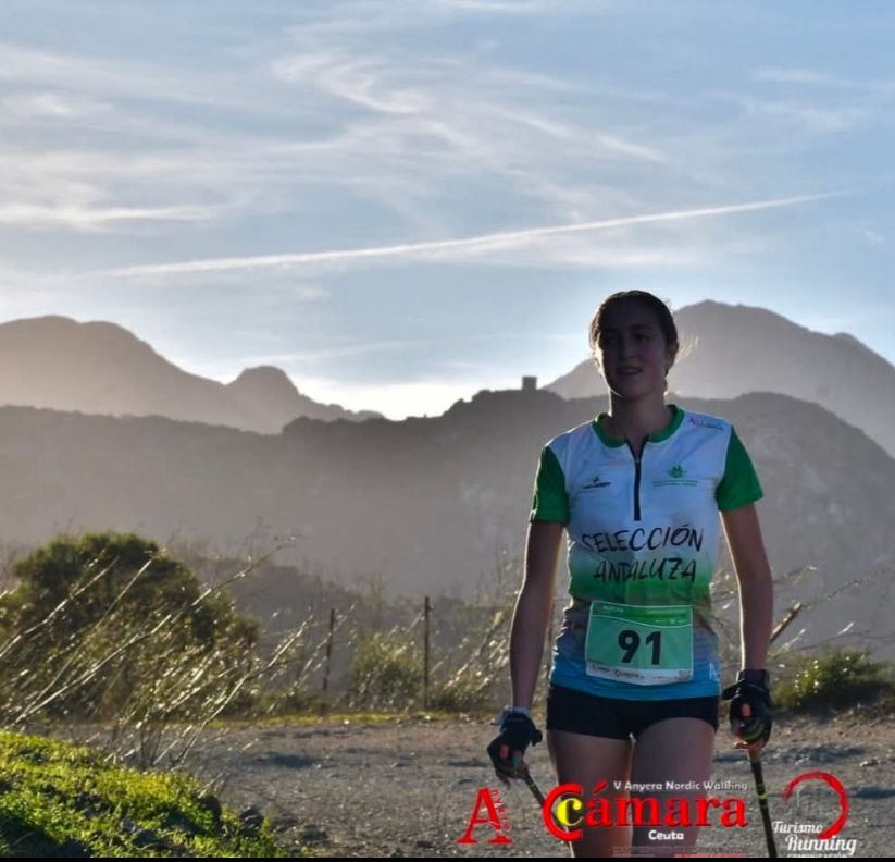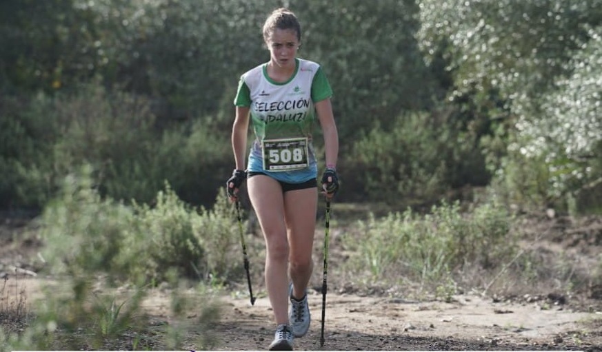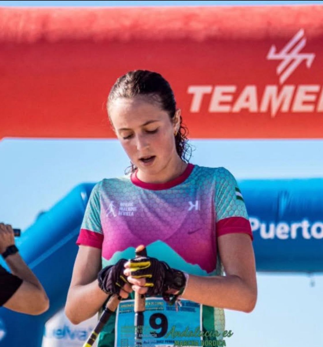 La marcha nórdica andaluza goza de una inmejorable ‘salud’. A nivel absoluto y en la base, en la cantera y escuelas, en deportistas en edad escolar. Y ese trabajo desde abajo está dando sus frutos de manera clara. Una de las deportistas que han emergido con todo su potencial este año es Inés Vázquez Perea. Campeona de España y de Andalucía junior, y de la Copa de España y Copa de Andalucía, la joven sevillana, del CD Nordic Walking Sevilla, incluso en la última prueba de la Copa celebrada este domingo en Lanteira ha sido segunda en la clasificación general absoluta. Con Javier Ramos e Isidoro Enrique Hiraldo como referentes en Andalucía y Pedro Romero y Ramontxo Arandia a nivel nacional, Inés Vázquez sueña con “poder ir a un Campeonato de Europa o del Mundo de marcha nórdica”. En solo cuatro años, y a pesar de su juventud, ya se ha proclamado campeona de España por Selecciones Autonómicas Absolutas en Ceuta. Centrada en su curso de Bachillerato, compagina sus estudios y exámenes con entrenamientos, competiciones y desplazamientos. “Mis profesores que ayudan y me aplazan los exámenes para poder ir a las competiciones”, dice. Inés Vázquez desea ir a alguna competición internacional la próxima temporada e ir abriendo aún más fronteras en su corta, pero más que productiva, trayectoria.