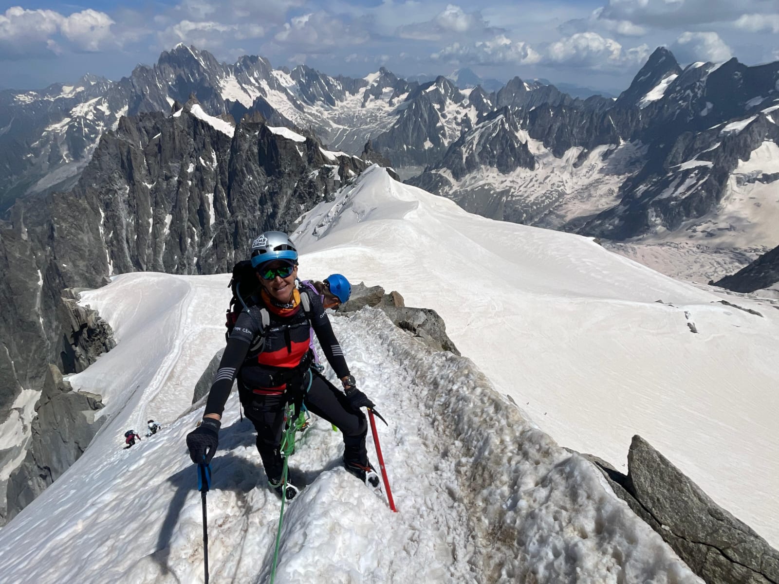 Otra de mis grandes pasiones, quizás la que más, y también la que requiere más tiempo, técnica y preparación. Relacionar la montaña conmigo es vivir el alpinismo. Sierra Nevada, todas las ultras, integrales, Pirineos, etc…me llevaron a conocer más y más montañas, a querer conocer, investigar qué podían ver mis ojos, desde lo más alto de cualquier lugar. Siempre en mis viajes me he salido del camino, de los grupos, para ir sola o acompañada al pico, o lugar más alto de donde estuviera. Así, llegué a mis primeros dos cuatro miles, Mont Blanc y Monte Paradiso después de los tres miles de Sierra Nevada y Pirineos. Aquello, para mí, fue lo más brutal que hice en mi vida. Me sentía llena, plena, feliz. No podría describir más con palabras.