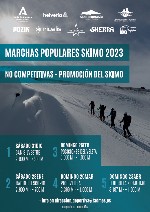 Llega la cuarta y penúltima cita del programa de Marchas Populares de Skimo 2023 organizado por el Área Deportiva de la Federación Andaluza de Deportes de Montaña, Escalada y Senderismo. Este domingo 26 de marzo tendrá lugar la subida al Pico Veleta