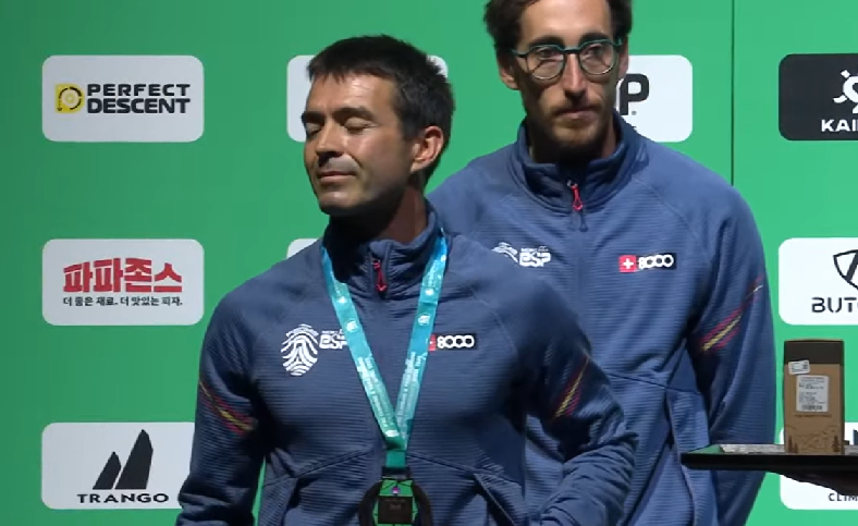 «Ha sido una pena. He tenido muy cerca el campeonato del mundo, pero me quedo con plata. Lo bueno es tener que competir contra el mejor escalador del mundo -por Sho Aita- a mi lado», asegura Javier Aguilar.