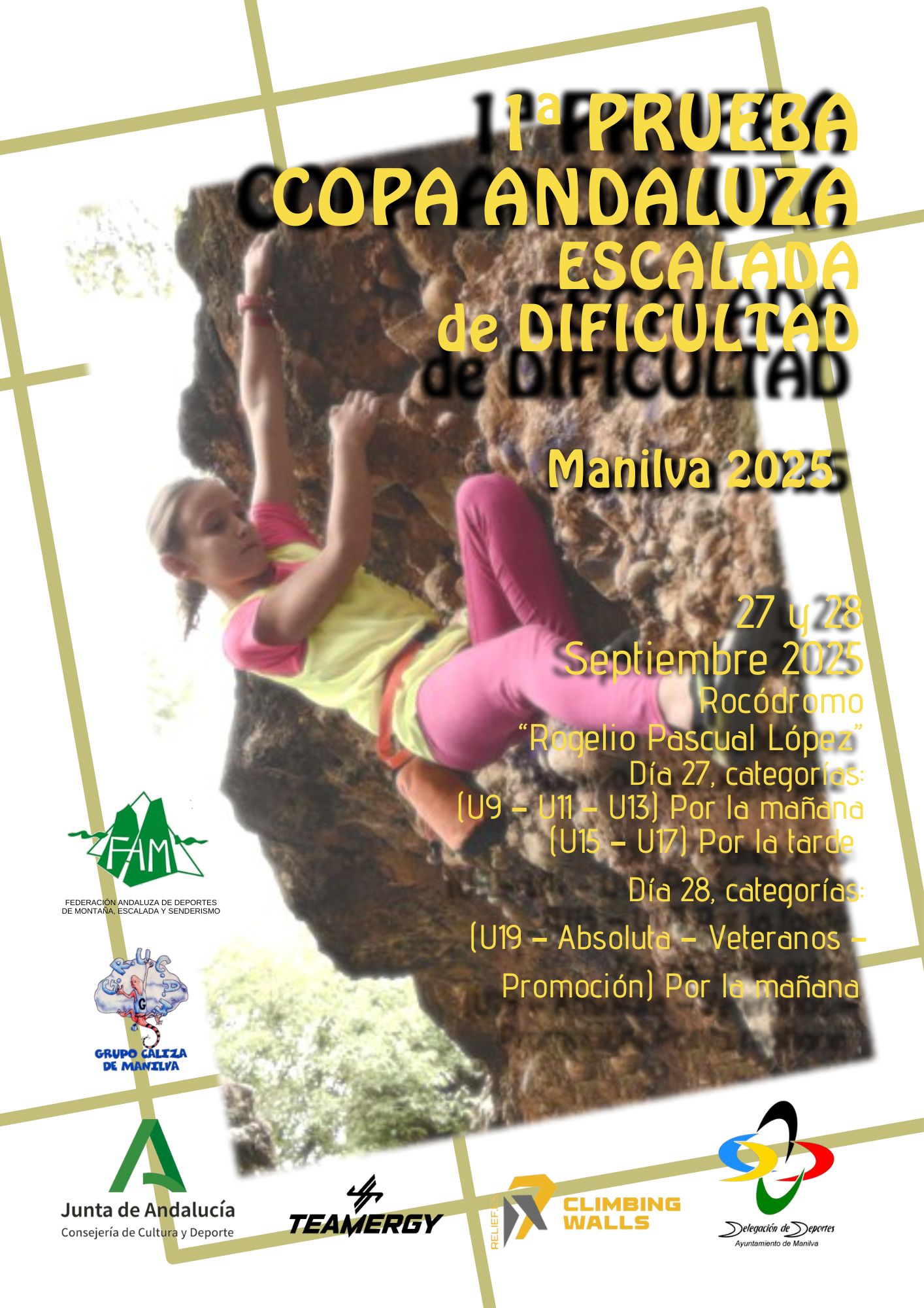 La competición de escalada retoma su actividad con el comienzo de la Copa de Andalucía de Escalada de Dificultad de 2025. La primera prueba tendrá lugar los días 27 y 28 de septiembre de 2025 en el «Rocódromo Rogelio Pascual López» de Manilva.