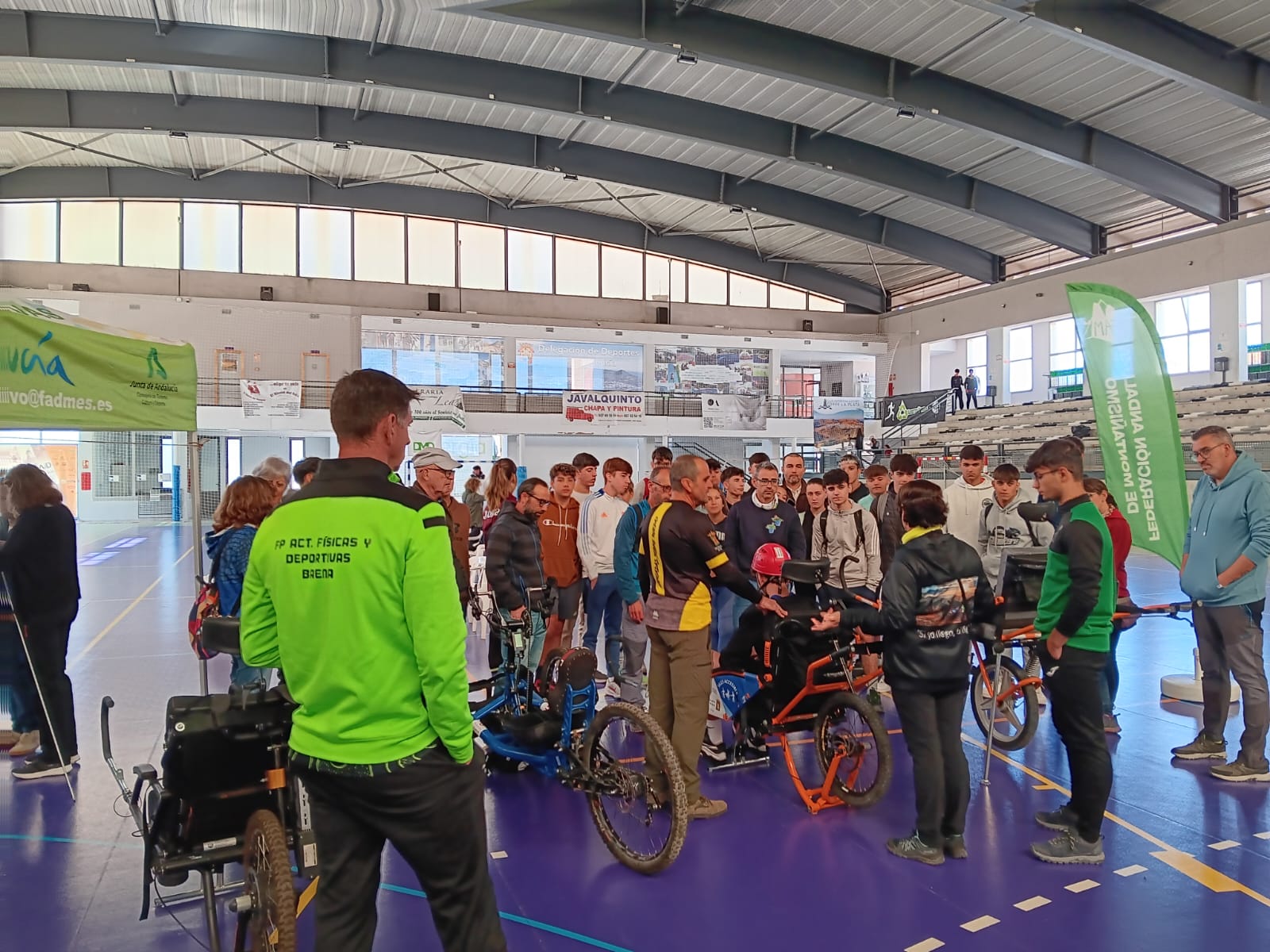 El Encuentro comenzó el viernes 18 con una jornada teórica y práctica con alumnos de FP Grado Medio de Técnico en Actividades Deportivas, en la que se practicó el uso de materiales para ayudar a deportistas con diversidad funcional en el desempeño de actividades deportivas en el medio natural: las barras direccionales y sillas Joelette.