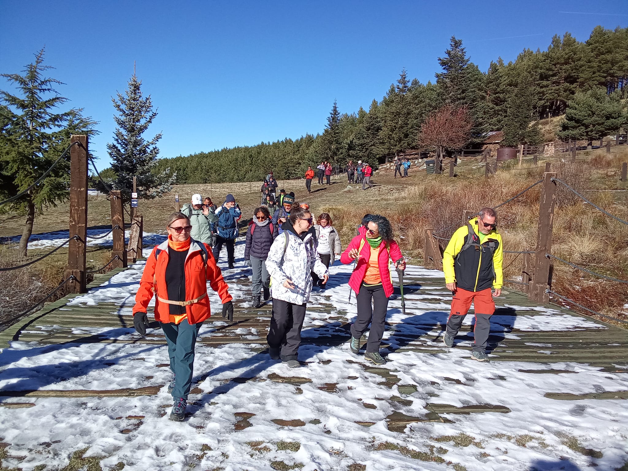 El grupo marcharía hasta la Estación de Esquí, realizando una bonita Ruta de unos 4 kilómetros en un entorno entre pinos, donde en algunas zonas la nieve ya fue la protagonista.