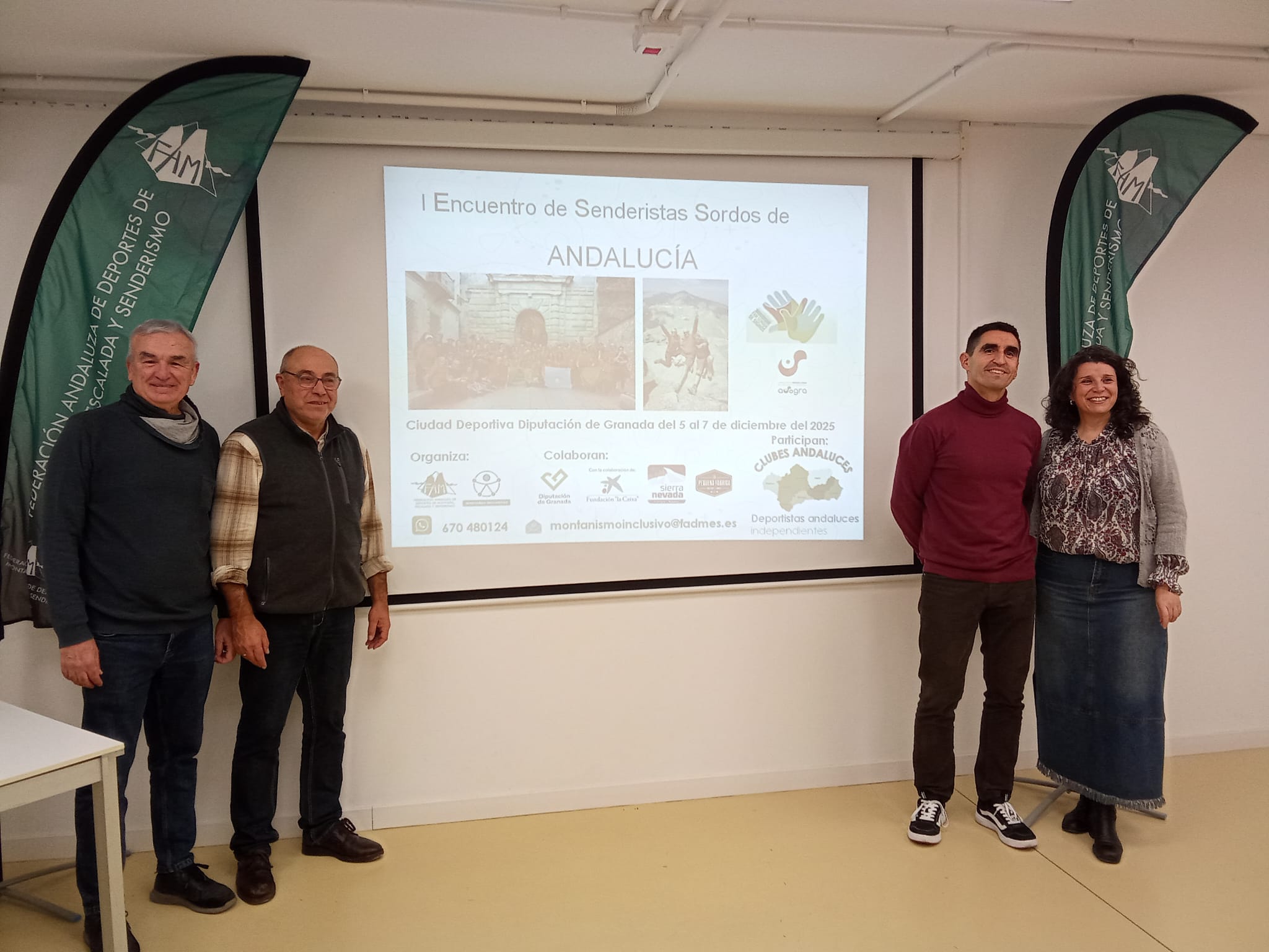La Federación Andaluza de Deportes de Montaña, Escalada y Senderismo (FADMES) ha celebrado este fin de semana 5, 6 y 7 de diciembre por primera vez un encuentro de Senderistas Sordos de Andalucía, evento promovido por el Comité de Montañismo Inclusivo, la vocalía de Personas Sordas a través de Francisco Javier Ros, y en colaboración con La Diputación de Granada, Fundación La Caixa y Cetursa-Sierra Nevada.