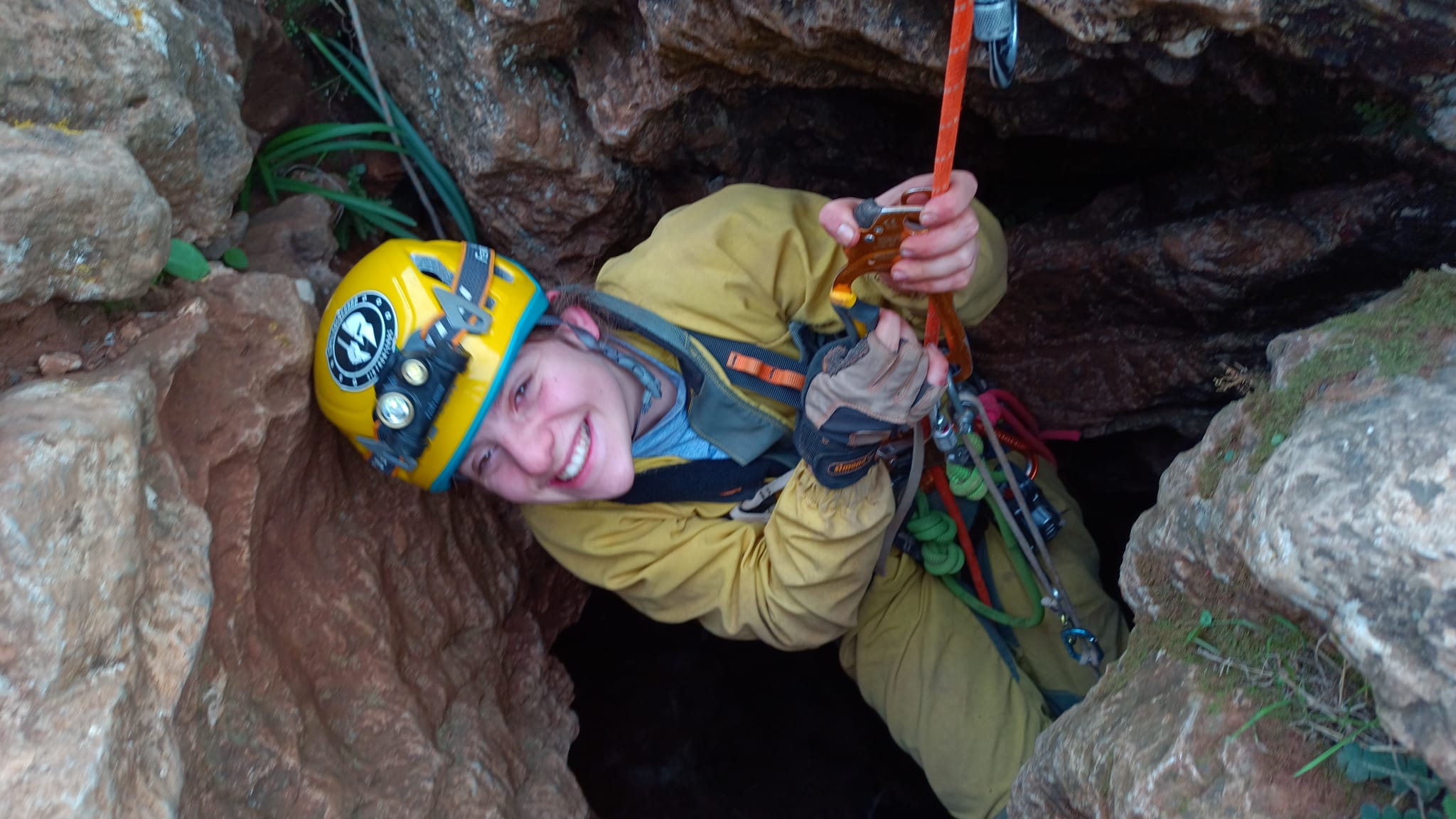 Mi pasión por la montaña se inicia con la espeleología. Todo empezó porque veía a mi madre y mi hermana que llegaban de hacer barrancos y cuevas y me enseñaban las fotos y yo le decía a mi madre, “mamá yo quiero”. Pero mi madre no sabía cómo hacer por mi diversidad, tengo afectada la mano derecha y la pierna izquierda y no tengo equilibrio. Por todo esto mi madre no sabía cómo ayudarme; a veces me llevaba a cuevas pequeñitas que no necesitaban cuerda con sus amigas en su espalda, pero yo le decía que quería hacerlo de manera autónoma.