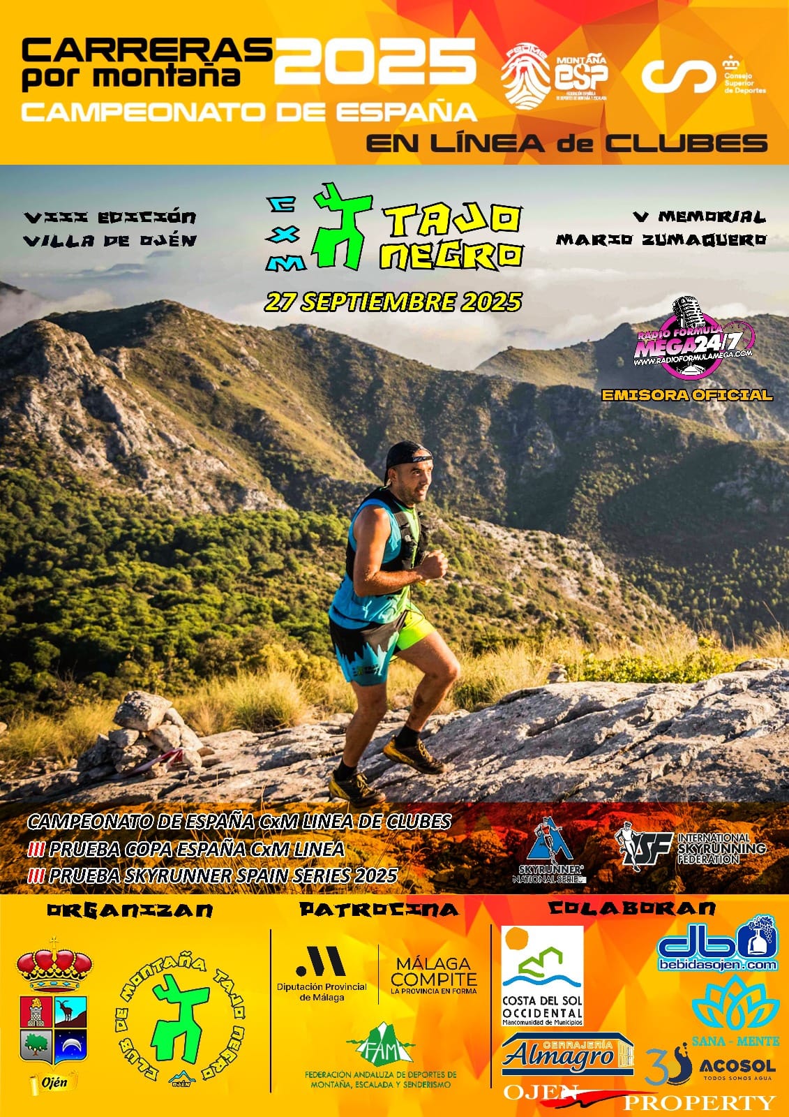 La Villa de Ojén acoge mañana sábado, 27 de septiembre, una de las citas más esperadas del calendario nacional de carreras por montaña: la VIII Edición de la CxM Tajo Negro Skyrace, que este año también rendirá homenaje en su V Memorial a Mario Zumaquero. Una prueba que en esta edición será Campeonato de España de Clubes, en el que la representación andaluza optar a puestos de podio.