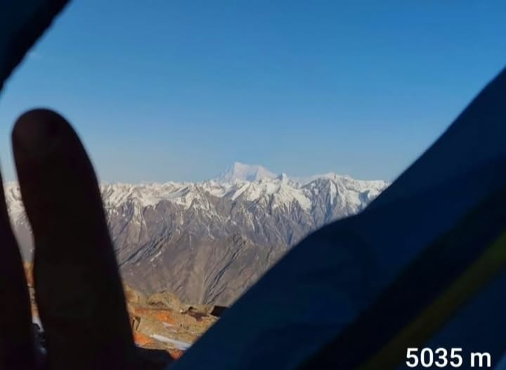 A primeros de esta semana indicaba que “desde que llegamos hemos ascendido cuatro cimas de 3.101m, 4.597m, 5.047m y 5.159m pasando noche en esta última, sumando un total de 65,20 km y 18.256 metros de desnivel acumulados”.
