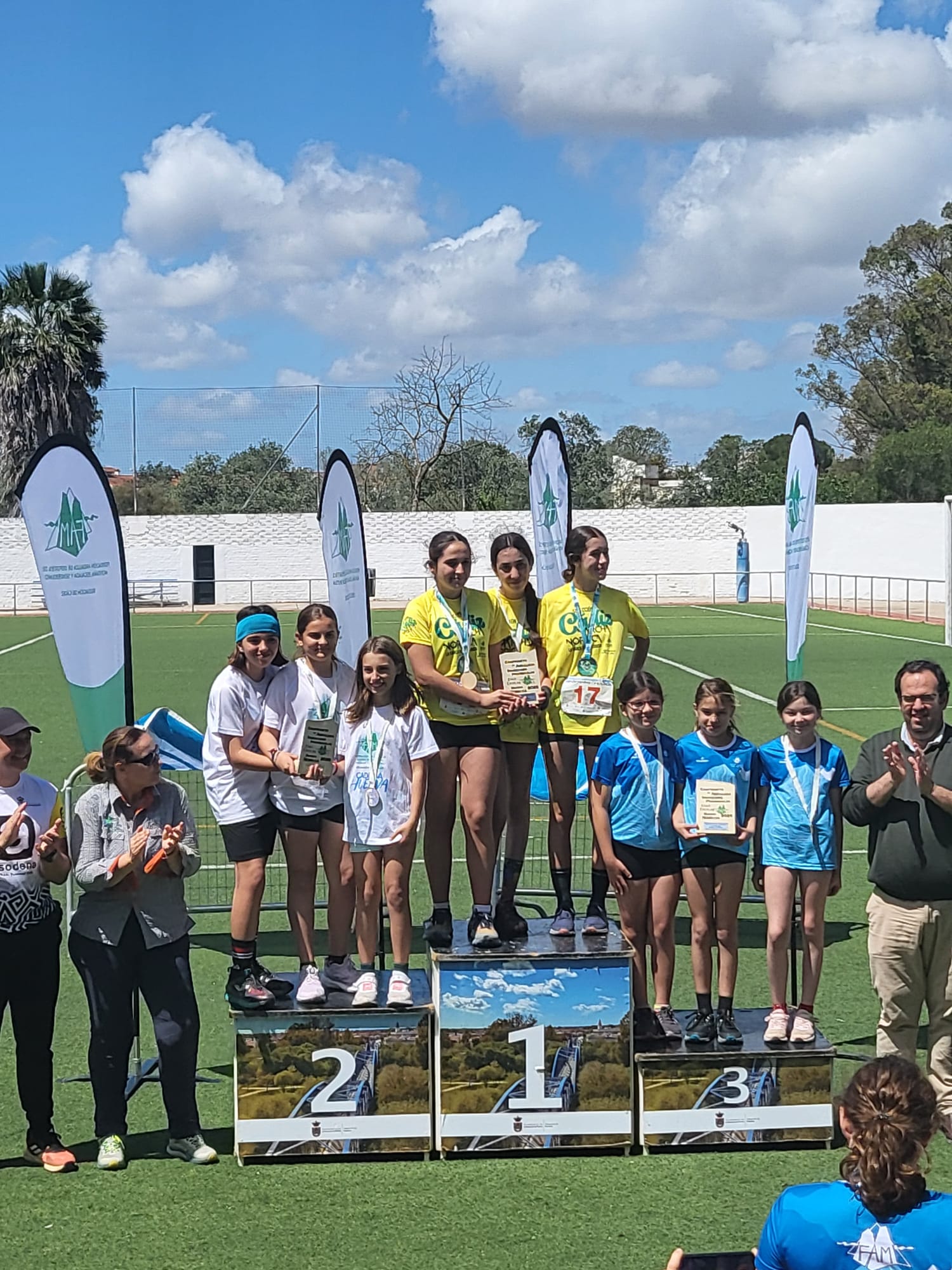En los Relevos, sobre un recorrido de 5 kms., el podio infantil ha estado conformado por Sergio Sánchez Bueno y Estrella Rodríguez (Huelva), Miriram Mesa y Marcos Gilabert (Cádiz) y David González y Alma González (Almería). Y el podio cadete por Iris Morales y Lucas Gámez (Málaga), Julia Molina y Arturo Limón (Huelva) y Daniela Vázquez y Hugo Herrera (Huelva).