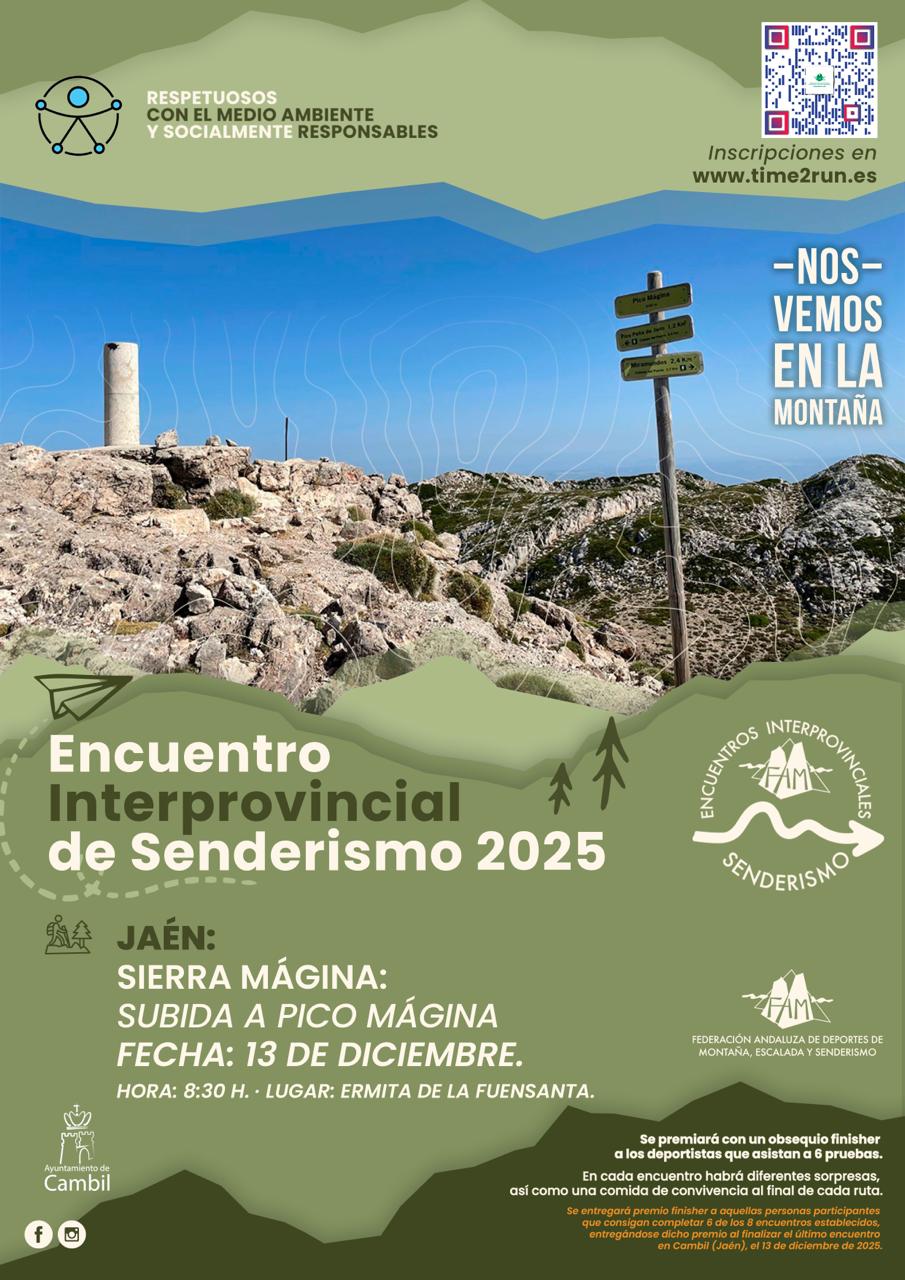 La Federación Andaluza de Deportes de Montaña, Escalada y Senderismo (FADMES), a través de la Delegación de Jaén, organiza el Encuentro Interprovincial de Senderismo en la provincia de Jaén, concretamente en el Parque Natural de Sierra Mágina, este sábado 13 de diciembre, actividad que pone el punto y final al programa de 2025.