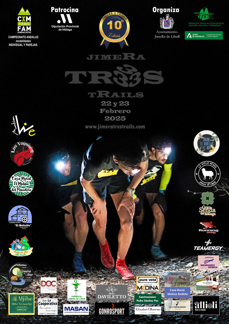 La JimeRa tRes tRails 2025, organizada por el Ayuntamiento de Jimera de Líbar, se celebra este sábado y domingo, prueba incluida en el calendario oficial de la FADMES como Campeonato de Andalucía de CxM por Etapas, una competición de larga distancia en semiautosuficiencia por etapas para corredores y corredoras que tengan 21 años.