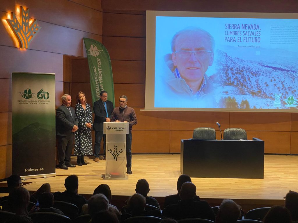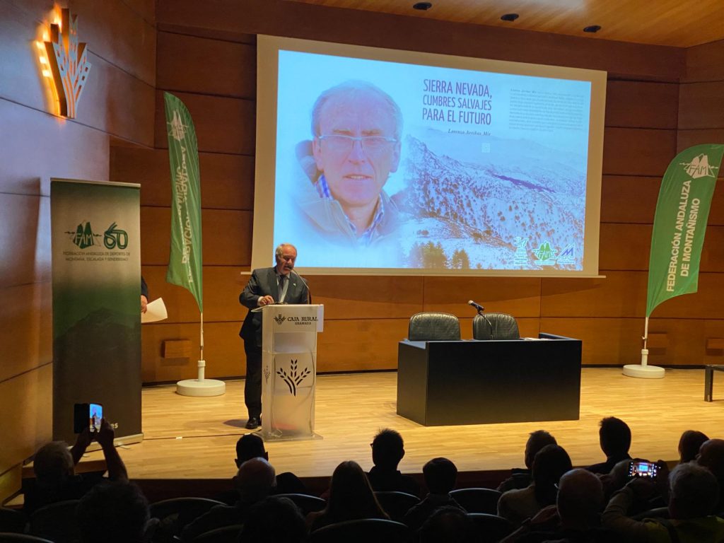 A continuación, se presentó el libro ‘Sierra Nevada: cumbres salvajes para el futuro’ de Lorenzo Arribas Mir, publicación coordinada por Manuel Titos Martínez, quien fue el encargado de dar a conocer este nuevo gran legado de Lorenzo Arribas, al que homenajeó con una detallada semblanza.